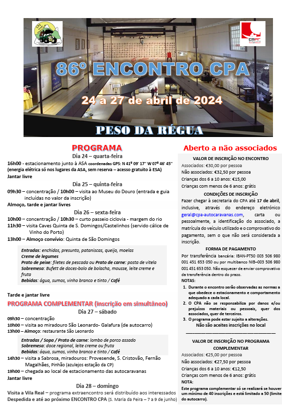 Inscreva-se até ao dia 17 de abril e convide um amigo autocaravanista para se juntar ao nosso convívio.